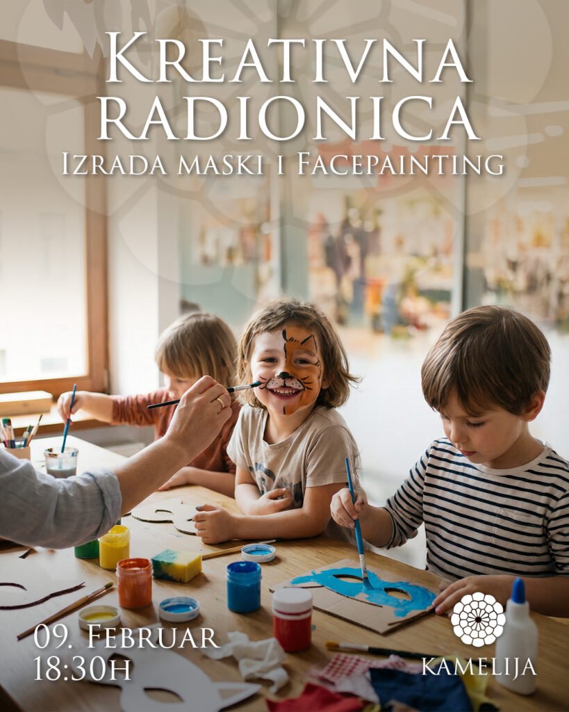 U ponedjeljak, 09. februara u 18:30h, pozivamo najmlađe na veselu kreativnu radionicu izrade maski sa @radionice_srece_sa_milicom i facepaintinga sa @fun.time.me .Mališani će imati priliku da puste mašti na volju, stvaraju sopstvene maske i uživaju u zabavnom oslikavanju lica, uz puno boja, igre i osmijeha.Vidimo se u Kameliji!